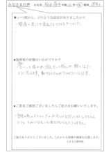お家での自分でのケア法も教えていただいて実践する事で、施術後の状態が続く感じがしています。